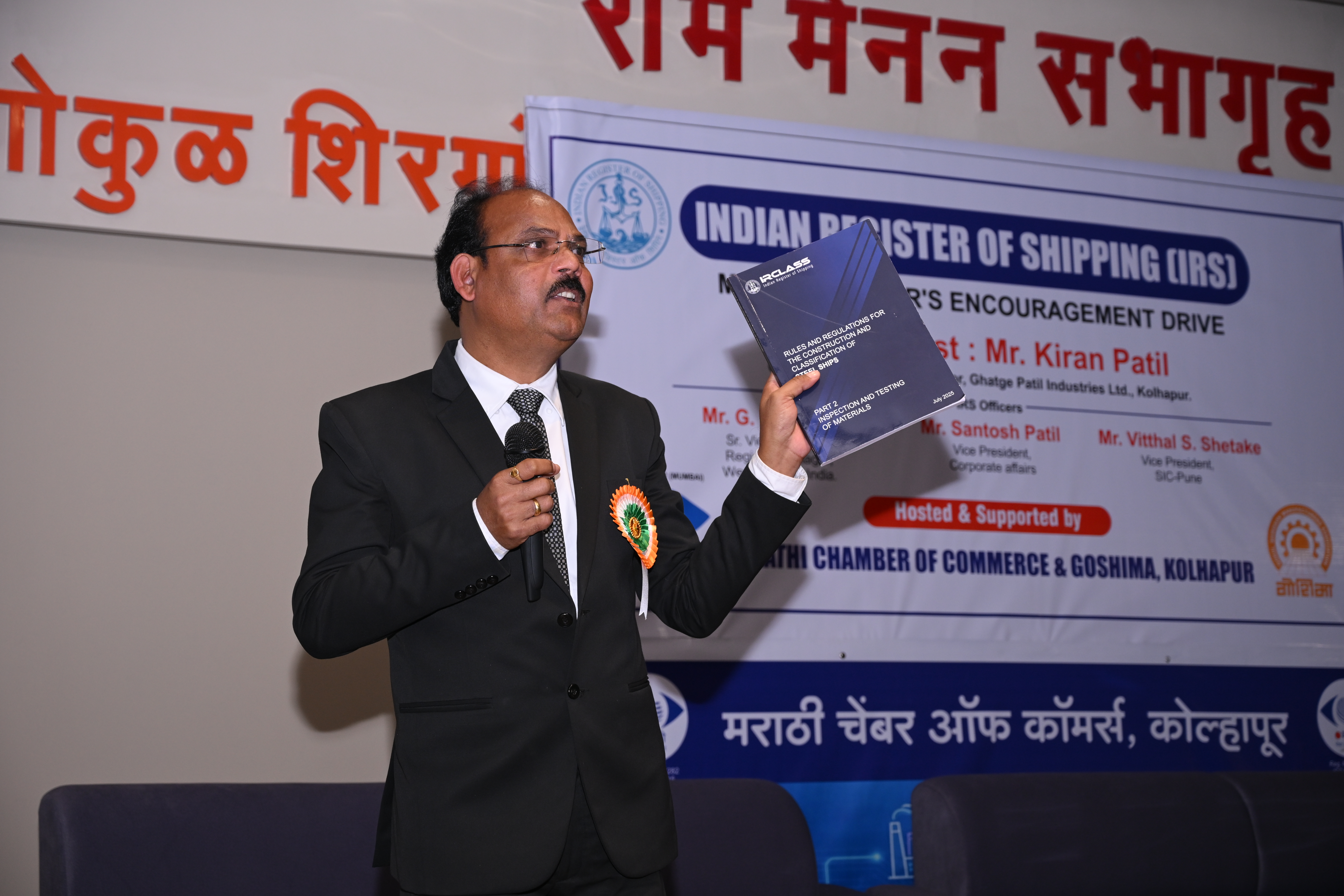 This outreach event was aimed at creating awareness among MSMEs about opportunities in the maritime and shipbuilding sector and encouraging participation in marine component manufacturing under IRS guidance. The event was graced by Mr. Kiran Patil, CMD – Ghatge Patil Industries Ltd. as Chief Guest, along with other industry leaders and dignitaries.